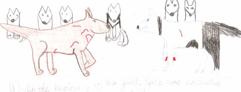 I would recommend this book to anyone who likes fiction books about history. In this book it doesnít tell you any lies about the harshness that really happened in this book. It was a little gory and their were dog fights like the one illustrated above. If that doesnít bother you, this might be a really good book for you to read.