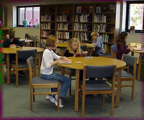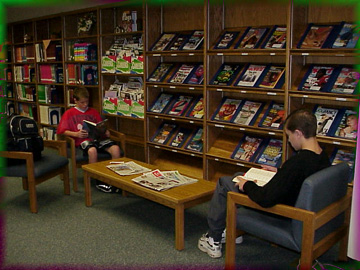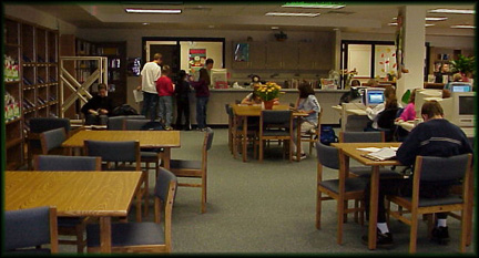 lounge reading area, computer workstations, a staff workroom