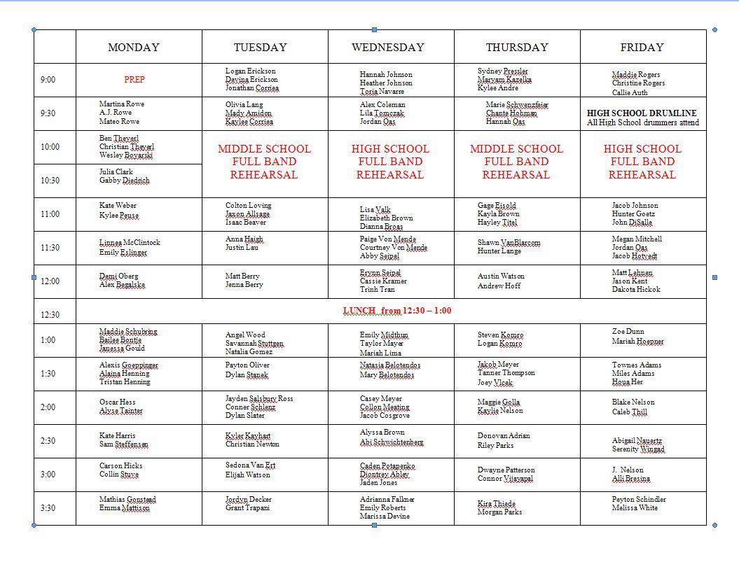 High School Band Students are reminded that August 30th there is a REQUIRED marching band camp beginning at 9:00 AM .