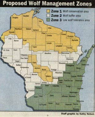 According to the DNR, the main difference between the two classifications is that the "threatened" status allows greater flexibility in dealing with the animals. "In general," the DNR reports," wolves will continue to be highly protected." The plan establishes "zones" throughout the state to help manage the wolves. Zones in the northern part of the state would encourage wolf packs to be established. Zones in more populated areas would discourage the establishment of packs. In addition, the plan allows limited control of wolves that are attacking livestock. This has proved to be one of the most controversial aspect of the plan with both farmers and environmental groups expressing objections but for different reasons.